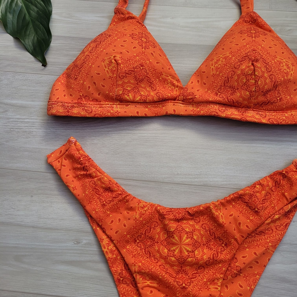 Tenha o melhor verão da sua vida com o nosso Biquíni Asa Delta Bandana Laranja.