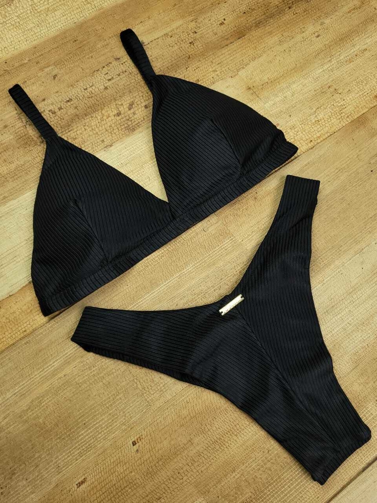 Explorar o verão nunca foi tão estiloso com o nosso Biquíni Asa Delta Canelado Preto!