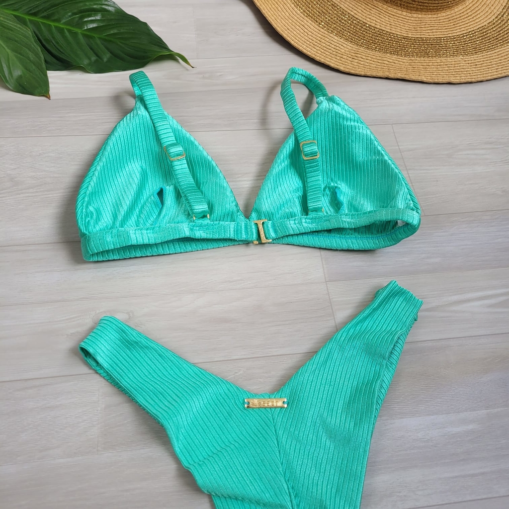 Tenha o melhor verão da sua vida com o nosso Biquíni Asa Delta Canelado Verde Água.