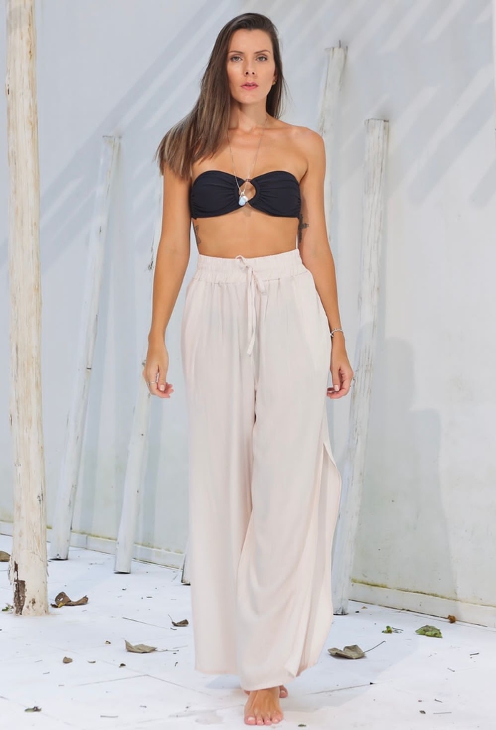 Arrase com a sua saída de praia! A Calça Pantalona além de compor seu look pré e pós praia, piscina, a saída ainda pode ser usada como uma terceira peça ou peça principal do look de calor.